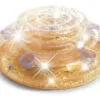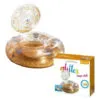 O modelo tem acabamento transparente com glitter rosa e dourado, que brilha com o sol e traz um toque divertido e sofisticado para qualquer ambiente aquático.