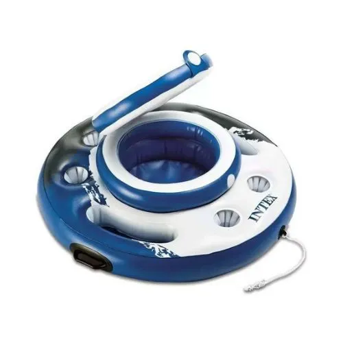 Geleira flutuante intex da linha river run com um diâmetro de 89 cm. Inclui 5 porta-copos, 3 câmaras de ar e 2 alças resistentes para facilitar o manuseio da geleira. Incorpora 2 câmaras de ar para maior resistência. Geleira insuflável e flutuante para 24 latas fabricada com vinil resistente.
