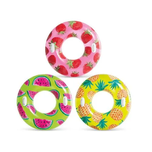 Leve mais cor, conforto e segurança para seus dias na piscina, praia ou lago com a Boia Frutas Tropicais Intex. Com design vibrante e estampas realistas de melancia, abacaxi e morango, essa boia circular é perfeita para toda a família relaxar e brincar na água.
