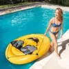 Com o novo desenho de Emoji desta bóia inflável da Intex vai ser o centro das atenções e todos vão querer tirar uma foto com ele. É amarelo e a parte superior está estampada com a cara de um Emoji sorridente com óculos de sol.