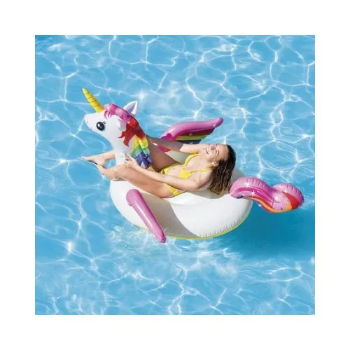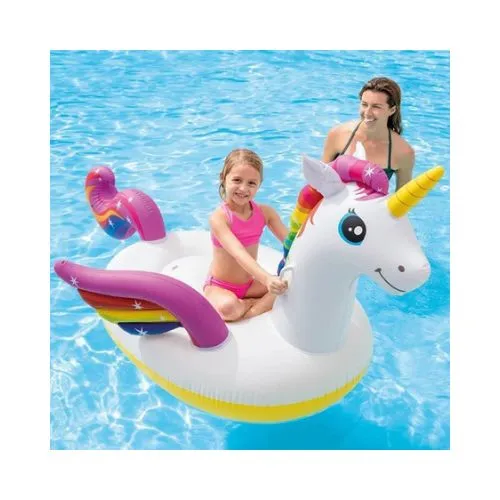 Transforme seus momentos de lazer com o colchão inflável em formato de unicórnio da Intex! Com cores vibrantes, chifre dourado e asas coloridas, essa boia é puro encanto e promete ser o centro das atenções na piscina, no mar ou no rio. 💦✨