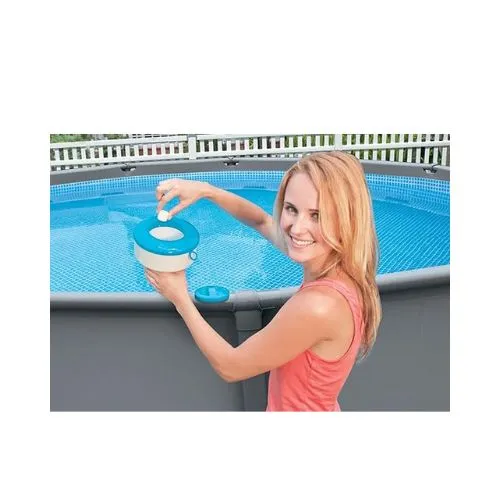 O Clorador Flutuante Intex 29041 é ideal para manter sua água cristalina com segurança e praticidade! Compatível com pastilhas de cloro ou bromo de até 7,6 cm (3″), é indicado para piscinas Intex de até 12 pés e PureSpa.