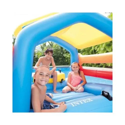 Este produto é fabricado pela Intex, líder mundial em infláveis, e oferece qualidade, resistência e muito estilo. Um playground aquático infantil perfeito para piscina, jardim ou área externa!