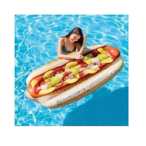Colchão Inflável para Piscina Hotdog ? Intex O que acha de saborear o verão com este incrível HotDog Inflável da Intex? Esse colchão inflável é colorido, com um formato divertidíssimo com estampa realista e super descolaoa.