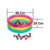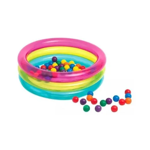 Com três anéis coloridos (rosa, azul e amarelo), ela acompanha 50 bolinhas multicoloridas, tornando a brincadeira ainda mais interativa. Indicada para crianças de 1 a 3 anos, é fabricada com PVC resistente e tintas não tóxicas, oferecendo qualidade e tranquilidade para os pais.