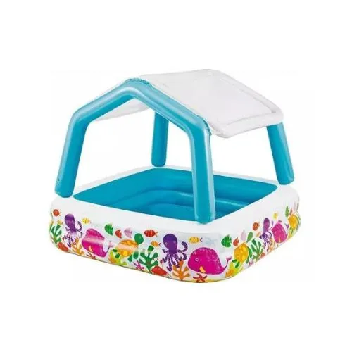 A Piscina Inflável Infantil com Cobertura Removível INTEX – Ref. 57470 é ideal para manter as crianças protegidas do sol enquanto aproveitam momentos incríveis ao ar livre. Com um design quadrado, ela conta com uma cobertura removível tipo toldo que proporciona sombra extra, ideal para manter os pequenos sempre protegidos.