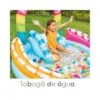 os pequenos se divertirem na água em dias de sol, com um tobogã de doces e colchão amortecedor para maior conforto ao deslizar. Também conta com uma ducha d’água que pode ser ligada a uma mangueira e bolinhas para diversos jogos, ela é a opção mais indicada para quem quer um produto durável, resistente e muito gostoso.